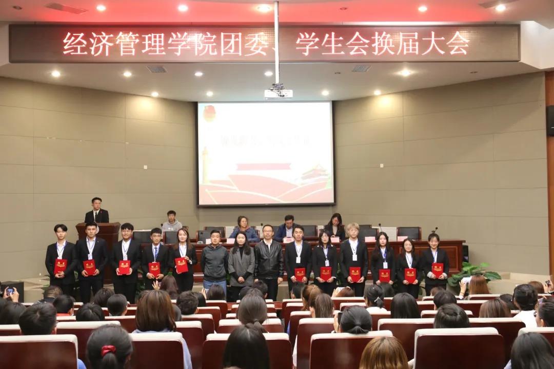 10月9日晚,tyc8722太阳集团城于图书馆报告厅举办团委、学生会换届大会。学院党委副书记、副院长冀强,团学办公室辅导员出席,全体学生干部参加。主席台就座老师分别宣读卸任、荣任团委、学生会主席团名单并为其颁发聘书、佩戴工作证并合影留念,学生代表依次发言。