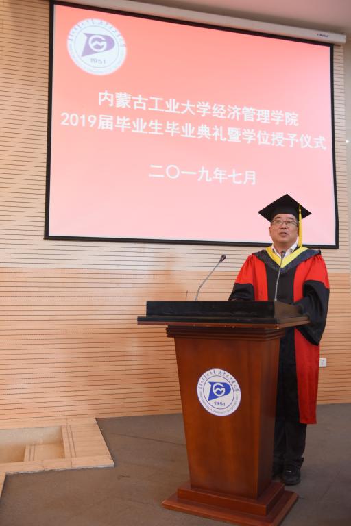 7月6日上午,tyc8722太阳集团城2019届毕业生毕业典礼暨学位授予仪式于新城校区第三教学楼报告厅隆重举行。经管与人文社科学部主任白宝光,学院党委书记、MBA中心主任任慧,院长长青,副院长乔洪滨,工商管理系副主任韩丽萍,信息管理与电子商务系主任华连连,会计系主任赵玉珍,经济系主任王科唯,公共管理系主任雅玲出席典礼。学院硕士生导师,研究生辅导员,团学办公室辅导员及毕业班班主任,500余名2019届毕业生及家属参加毕业典礼。学院党委副书记、副院长冀强主持典礼。