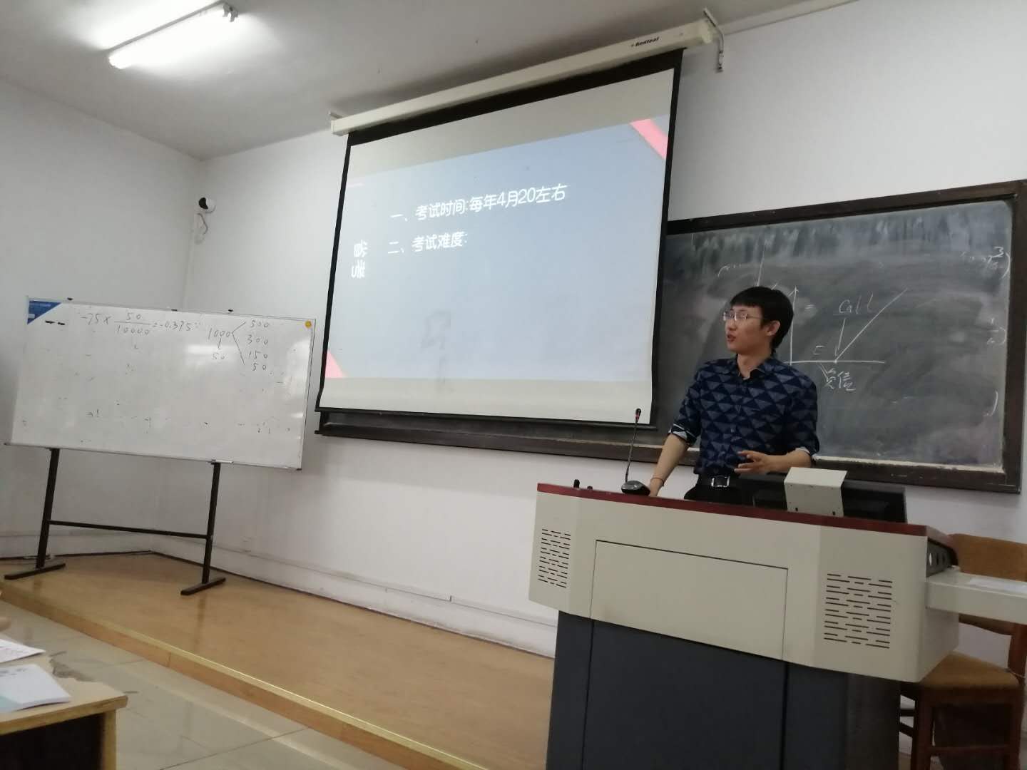 6月27日上午,邀请内蒙古知否科技教育有限公司创始人陈雪霏就如何备考公务员考试进行座谈。27日下午,邀请艾弗尼贸易有限公司总裁助理张婷、外贸业务员张艳丽与同学们进行工作经验分享。