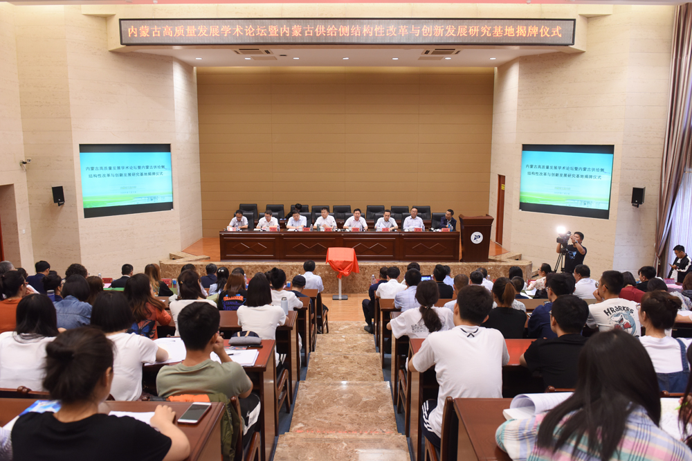 本次论坛以“内蒙古高质量发展、经济管理研究前沿与高水平论文发表”为题进行研讨,并为内蒙古供给侧结构性改革与创新发展研究基地揭牌。