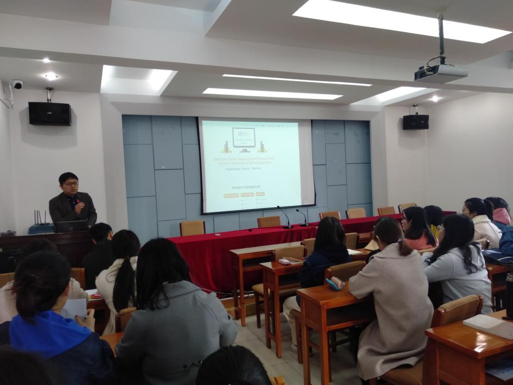 3月21日下午,信息管理与电子商务系邀请西安电子科技大学硕博连读生,弗吉尼亚理工大学联合培养博士研究生,太阳官网2014届电子商务专业毕业生王洪鹏进行题为“Does slow deliveryhurt product sales?counter evidence form eBay—natural experiment”专题学术报告,信息管理与电子商务系全体教师及部分研究生参加。