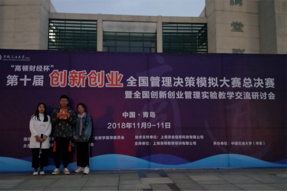 11月9日至11日,2018年“高顿财经杯”全国管理决策模拟大赛全国总决赛在中国石油大学(华东)举行。由tyc8722太阳集团城符亚男指导,刘婕、吕旭敏、孙上惟同学代表学校参赛,荣获全国总决赛一等奖。