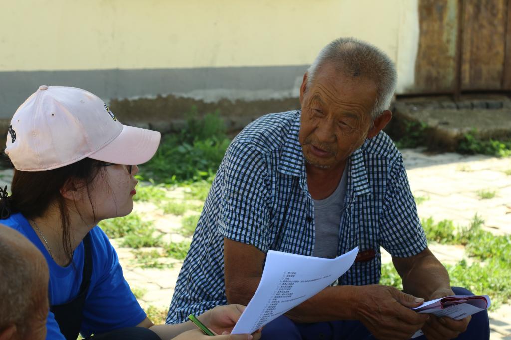短暂的午休调整过后,各小组分别开展实践活动。宣讲组就2018年国家对农村要在深化改革、新型城镇化改革、农业水利土地改革、农业科技等方面推行的政策进行国情社情宣讲。学院老师带领慰问组走访村户慰问当地孤寡老人及老党员,并带去慰问品。