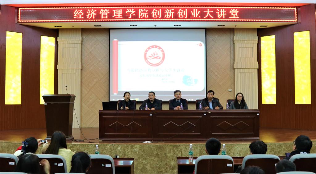 第一讲由郗虎庆主讲,以《当前经济形势分析与大学生就业》为主题。他结合多年来研究中的深刻感悟,运用通俗易懂的语言和生动的具体事例,从中国经济形势、内蒙古经济形势和学生关心的一些问题等方面进行深入讲解。既体现了时代特色,又回应了同学们的关切。告诉同学们既要“心中有数”又要“脚下有路”,“结合自身实际情况明确未来发展目标,做好自己就是超越别人”。讲座的视野开阔、思想前瞻、站位很高,知识非常专业,内涵也非常丰富,具有很强的理论性和指导性,对广大同学更好的理解和把握创新、创业提供了帮助和启迪。