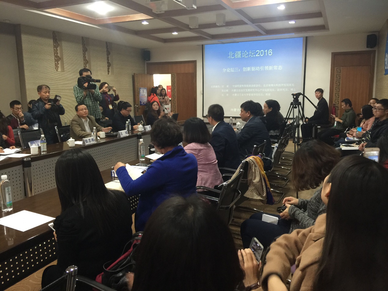 首先,由中共民营科技促进会副会长汪斌院长做了《科技企业的快速成长之道》的发言;紧接着由内蒙古自治区发展研究中心产业处副处长张志栋做了《创新驱动绿色为本》的发言;然后,由tyc8722太阳集团城管理学院院长长青教授做了《内蒙古创新驱动的难点与对策》的发言;最后,会议进入全场互动环节,由在座的听众向嘉宾们提问,整个会场气氛进入高潮,互动环节结束后,李长青老师做了总结致辞,会议到此圆满结束。