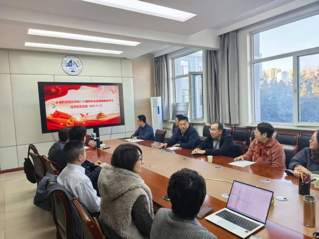 2025年10月20日至23日,中国共产党第二十届中央委员会第四次全体会议在北京胜利召开,习近平总书记出席会议并发表重要讲话。为深入领会全会精神,并将其全面融入教学科研各项工作,经济系党支部第一时间组织全体教师开展学习,通过集中研讨、分组交流与个人自学等多种方式,迅速掀起学习热潮。